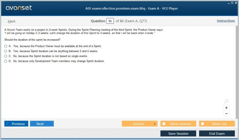 Exin ASF (EXIN Agile Scrum Foundation (EX0-008)) exam dumps vce, practice test questions, study guide & video training course to study and pass quickly and easily. Exin ASF EXIN Agile Scrum Foundation (EX0-008) exam dumps & practice test questions and answers. You need avanset vce exam simulator in order to study the Exin ASF certification exam dumps & Exin ASF practice test questions in vce format.