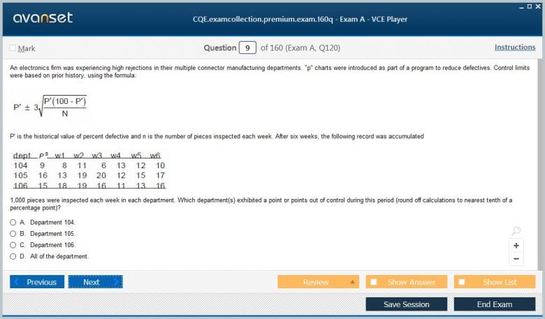 ASQ CQE (Certified Quality Engineer) exam dumps vce, practice test questions, study guide & video training course to study and pass quickly and easily. ASQ CQE Certified Quality Engineer exam dumps & practice test questions and answers. You need avanset vce exam simulator in order to study the ASQ CQE certification exam dumps & ASQ CQE practice test questions in vce format.