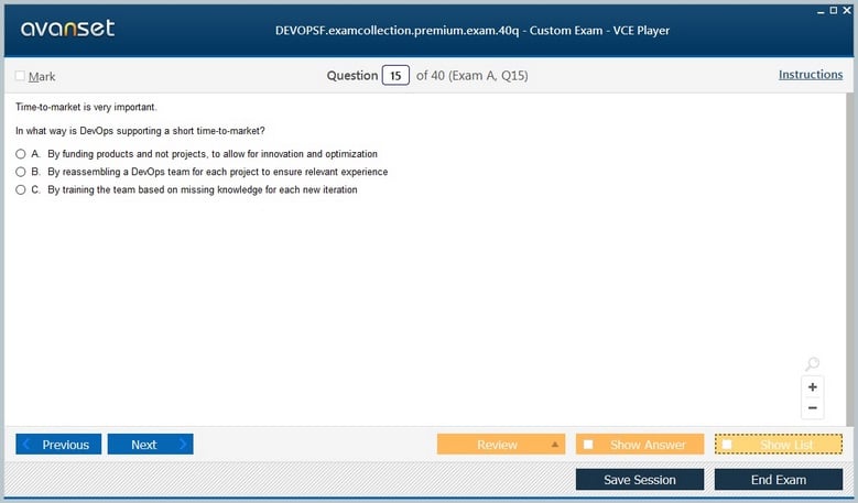 Exin DEVOPSF (EXIN DevOps Foundation) exam dumps vce, practice test questions, study guide & video training course to study and pass quickly and easily. Exin DEVOPSF EXIN DevOps Foundation exam dumps & practice test questions and answers. You need avanset vce exam simulator in order to study the Exin DEVOPSF certification exam dumps & Exin DEVOPSF practice test questions in vce format.
